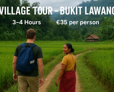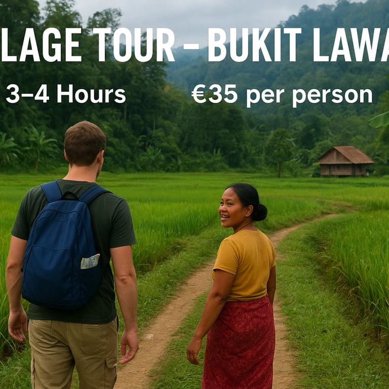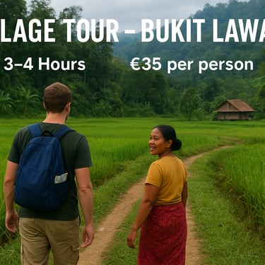 Discover the charm of Bukit Lawangβs countryside with our Village Tour. This experience offers you the chance to step beyond the jungle trails and connect with local life, culture, and traditions. Guided by a local expert, youβll explore rice fields, plantations, and rural villages where people live in harmony with nature.