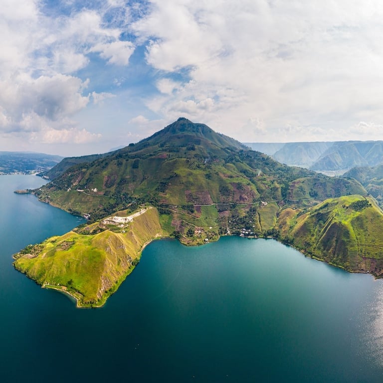 Lake Toba β The worldβs largest volcanic lake with Samosir Island at its center, rich in Batak culture.