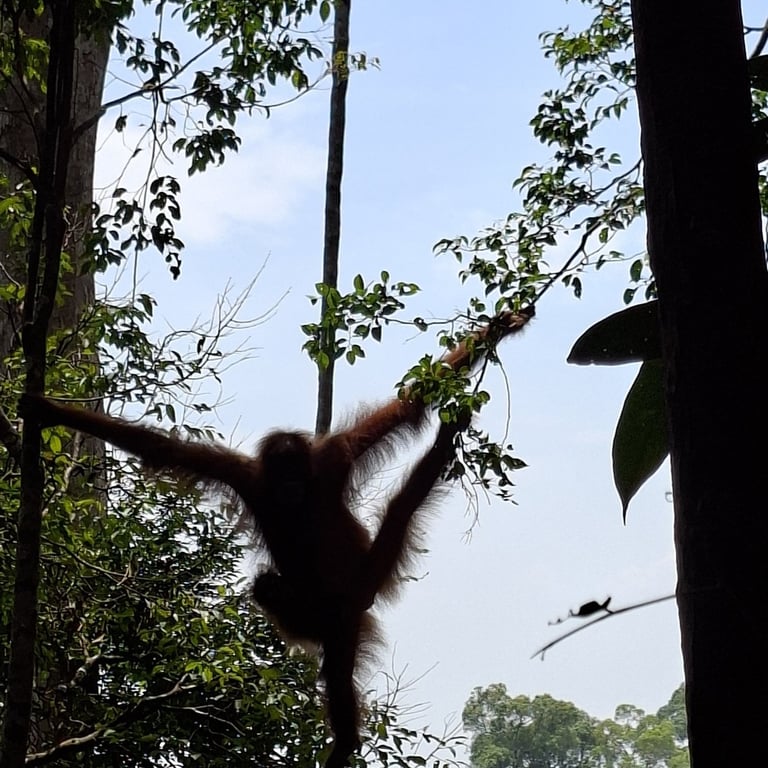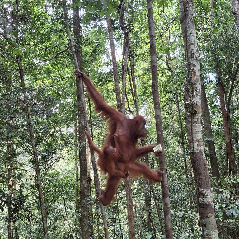 Our tours are not only about orangutans. During your journey, you may also encounter playful Thomas leaf monkeys, gibbons, hornbills, and a variety of exotic plants. The trekking routes can be tailored to your needsβwhether youβre a solo traveler, a couple, or a family with children. For families, we offer special family-friendly orangutan trekking packages, ensuring comfort and safety for travelers with two or three kids.